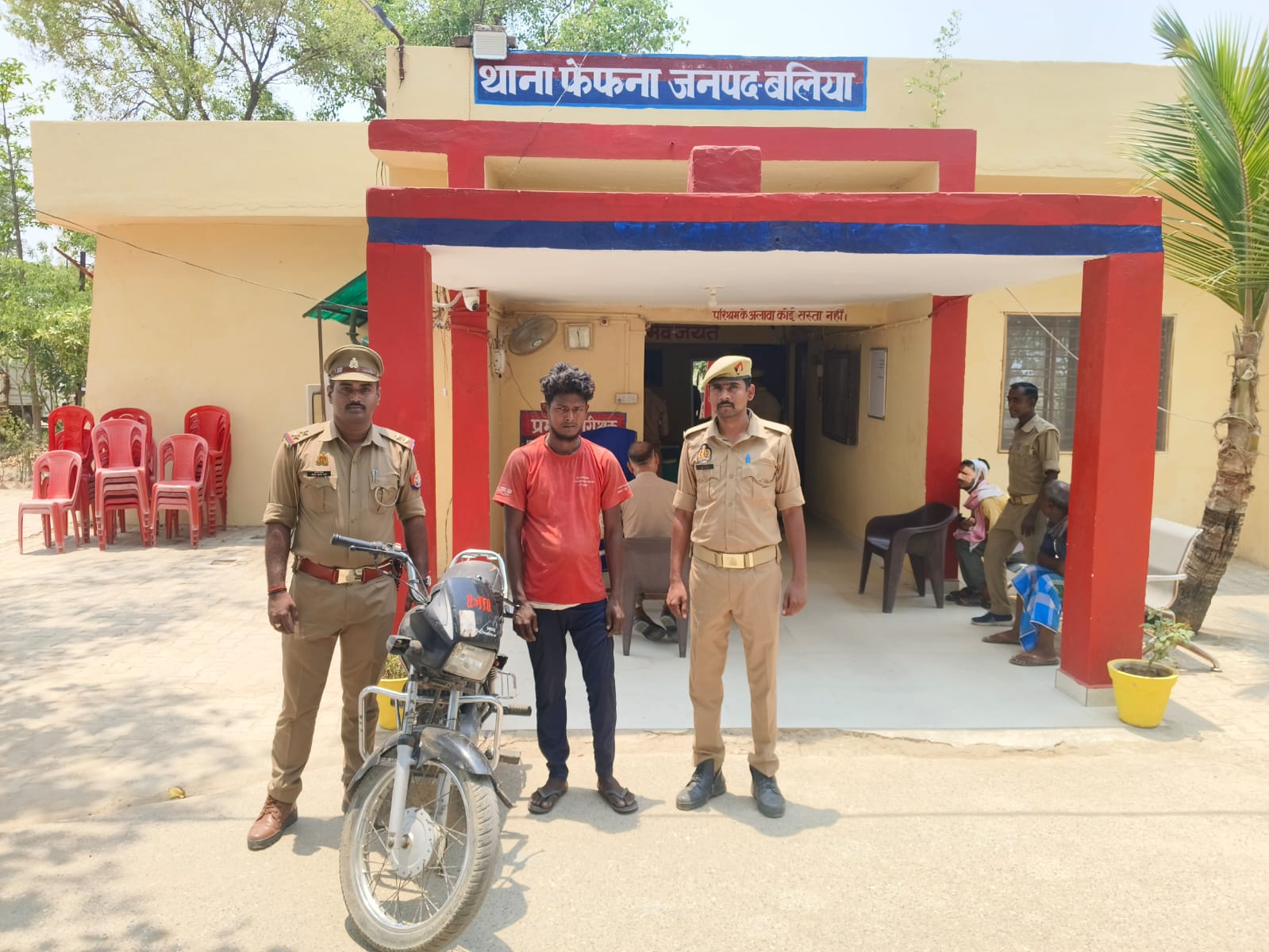 बलिया। फेफना थाना पुलिस ने चोरी से सम्बन्धित एक अभियुक्त को गिरफ्तार किया है। उसके कब्जे से चोरी की एक बाइक भी बरामद किया गया। पुलिस ने अभियुक्त के खिलाफ सुसंगत धाराओं में मुकदमा दर्ज कर न्यायालय चालान कर दिया।