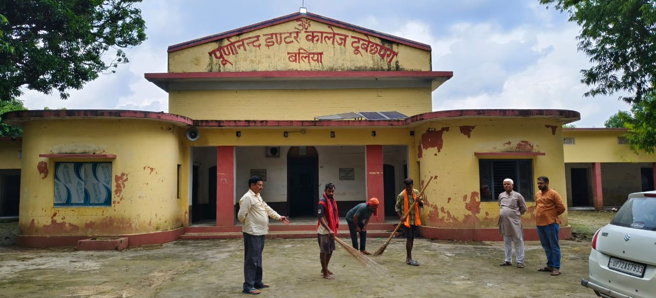 Ballia : बाढ़ घटते ही विद्यालय में की गयी साफ-सफाई, अब शुरू होगी पढ़ाई