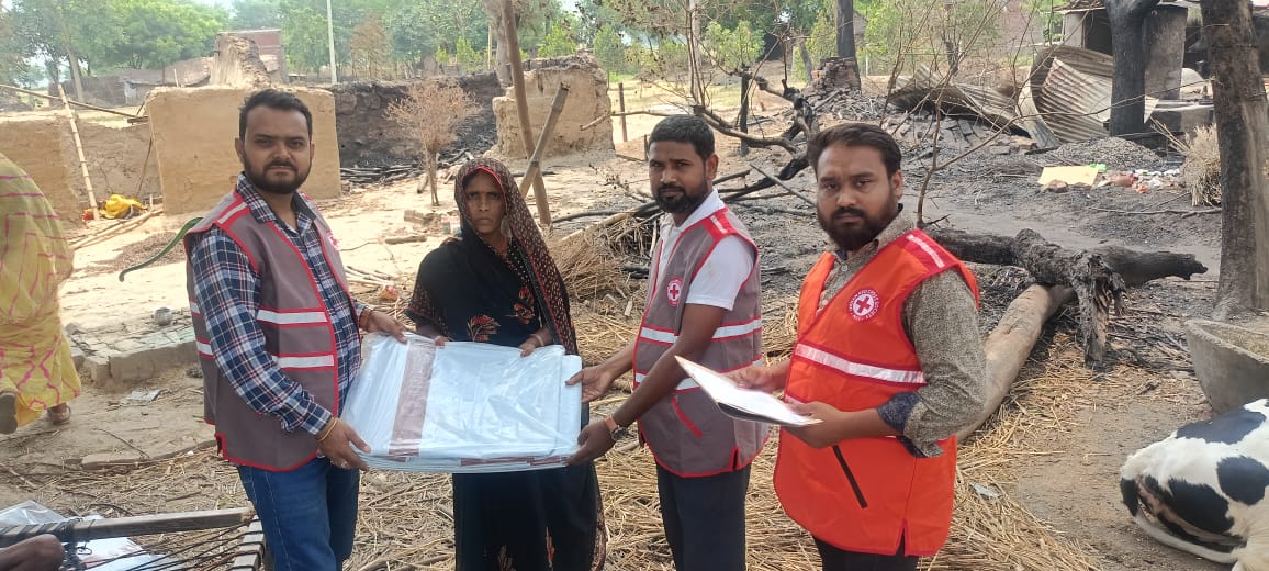 बलिया। जिलाधिकारी/अध्यक्ष आईआरसीएस बलिया प्रवीण कुमार लक्षकार के निर्देशानुसार, मुख्य चिकित्साधिकारी/उपाध्यक्ष डॉ संजीव वर्मन व सचिव/अपर मुख्य चिकित्साधिकारी डॉ आनंद कुमार के आदेशानुसार जिला समन्वयक/कोषाध्यक्ष शैलेन्द्र कुमार पाण्डेय के नेतृत्व में बांसडीह तहसील के विकास खण्ड बेरुआरबारी के ग्राम नारायणपुर नंबर 2 (बिंद बस्ती) में शुक्रवार को कतिपय कारणों से लगी लाग में प्रभावित परिवारों को राहत सामग्री का वितरण, जिला आपदा प्राधिकरण बलिया के सहयोग से रेड क्रॉस सोसायटी बलिया द्वारा किया गया।