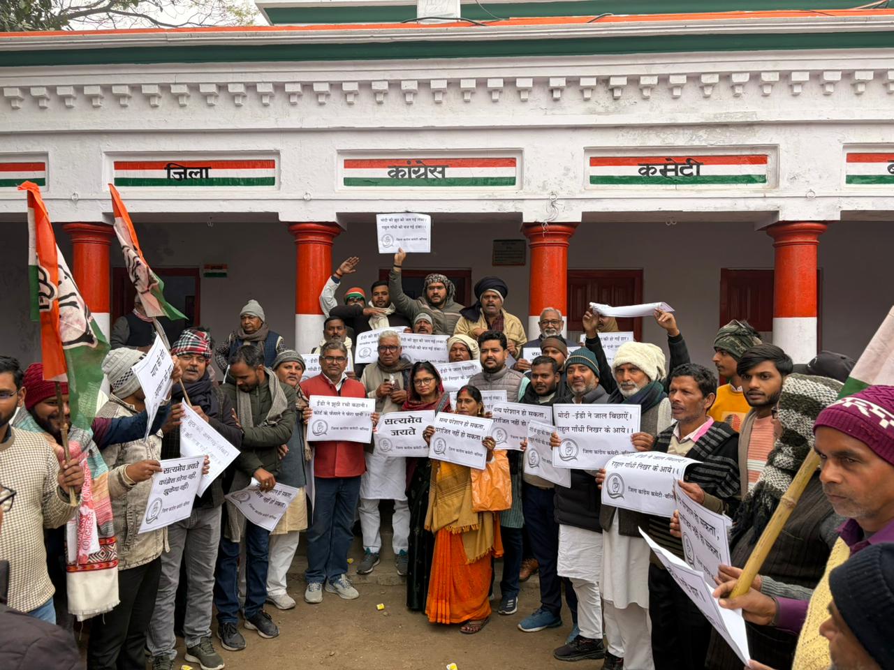 Ballia : भाजपा के झूठे प्रोपेगैंडा को लेकर कांग्रेस ने किया प्रदर्शन
