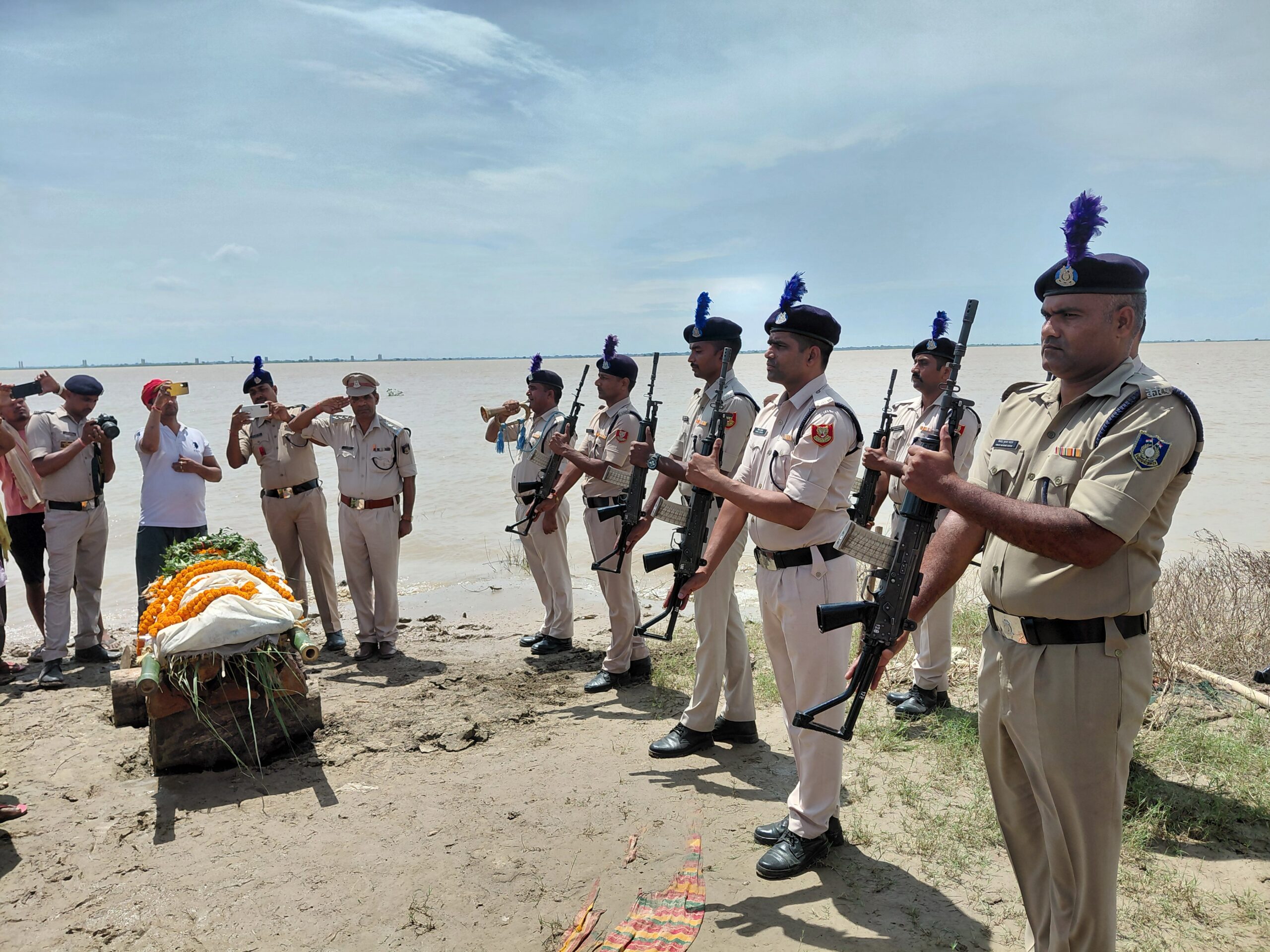 साथी जवान मंगलवार को उनके शव को तिरंगा में लपेट कर पैतृक गांव पहुंचे। शव आने की सूचना पर उनके दरवाजे पर लोगों की भीड़ जमा हो गई। परिजनों का रोते-रोते बुरा हाल था। कुछ देर बाद जवान के शव को अंतिम संस्कार के लिए सती घाट भुसौला ले जाया गया, जहां उनके साथियों ने उनको गार्ड आफ आनर दिया।