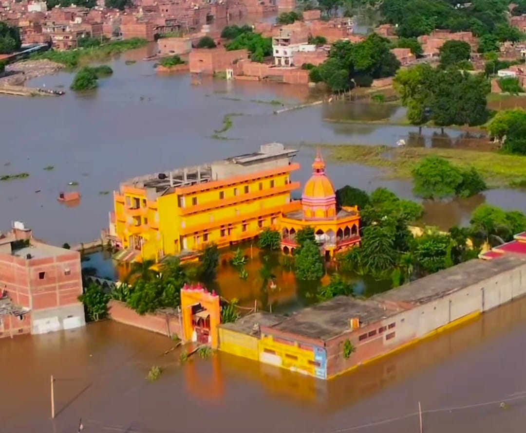 लोगों के मकानों और घरों में बाढ़ का पानी घुस गया है। वहीं गायत्री मंदिर भी बाढ़ के पानी से चारों तरफ से घिर चुकी है।