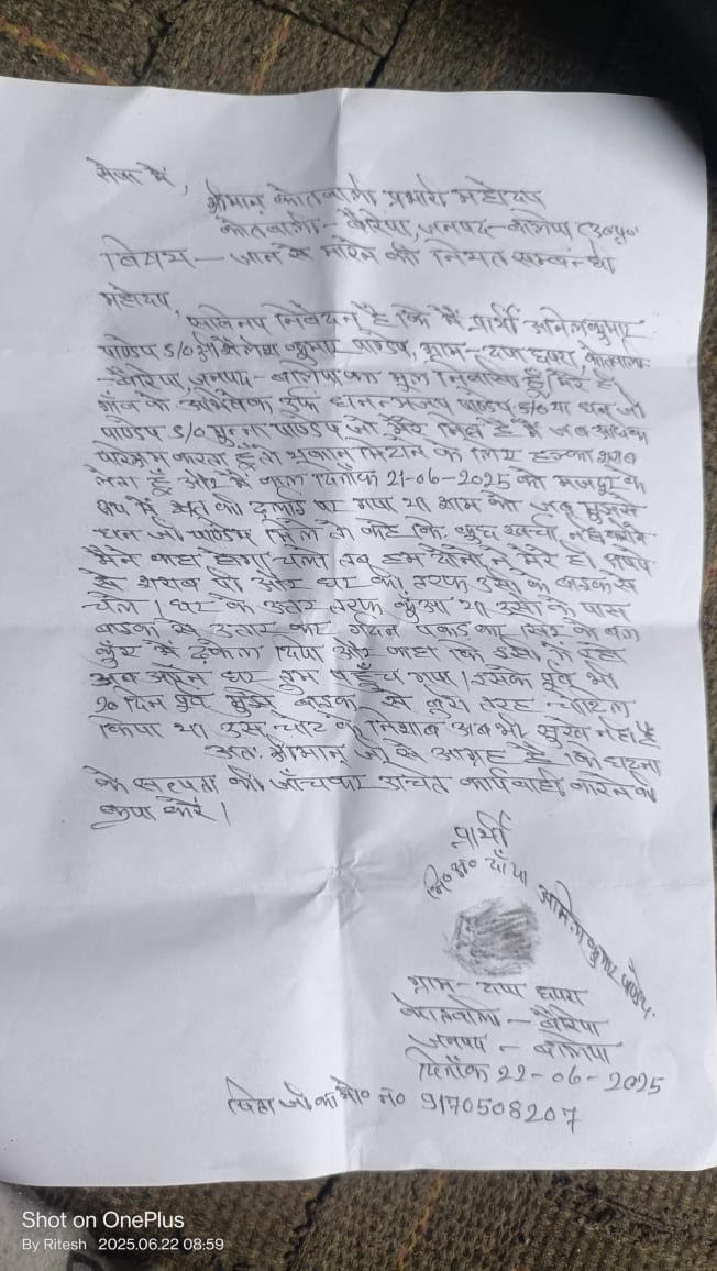 दया छपरा ग्राम निवासी अनिल कुमार पाण्डेय पुत्र शैलेश पाण्डेय 20 वर्ष ने अपने लिखित तहरीर में बताया है कि दया छपरा के ही अभिषेक कुमार पाण्डेय उर्फ धनंजय कुमार पाण्डेय पुत्र मुन्ना पाण्डेय शनिवार के शाम जब मैं ढलाई मशीन से काम करके घर आया तो मुझको शराब पीने के लिए गांजाहवा बाबा के पास स्थित भट्टी पर ले गए और मेरे ही पैसे से हम दोनों आदमी शराब पिए। उसके बाद अभिषेक के बाइक से हम लोग गांव आए।