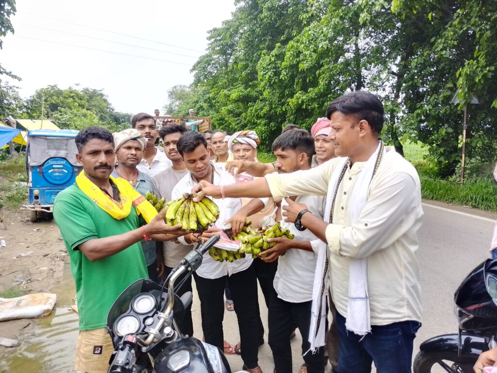 मझौवां (बलिया)। बाढ़ से विस्थापित होकर राष्ट्रीय राजमार्ग 31 पर शरण लिए पीड़ितों के बीच सोमवार को सेना के कमांडो अवनीश कुशवाहा (चुना) ने सेवा का उदाहरण पेश किया। गणेश चतुर्थी और बहुला त्योहार के अवसर पर उन्होंने टेंगरही, बंश गोपाल छपरा से लेकर दुबेछपरा तक सड़क किनारे डेरा डाले बाढ़ पीड़ित परिवारों में केले का वितरण किया। इस पहल से बाढ़ प्रभावित महिलाओं और युवतियों ने खुशी जताई और सेना के जवान की सराहना की।