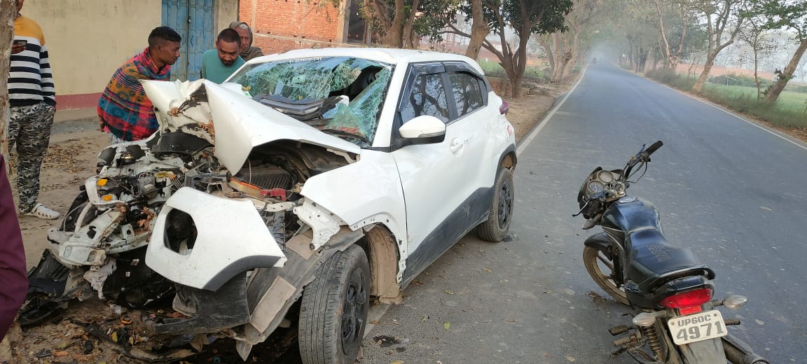 Ballia : तेज रफ्तार कार पेड़ से टकराई, दो की मौत, पांच घायल