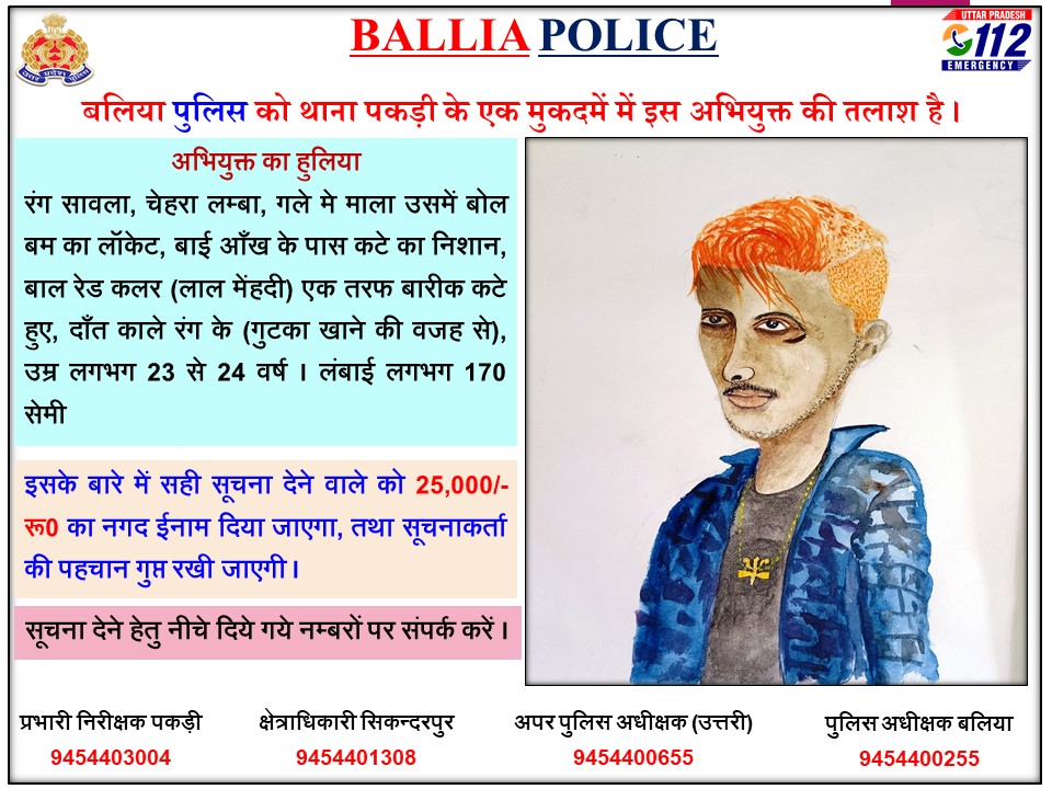 Ballia : गौर से इसे देखियें, पुलिस को है तलाश, कीजिए सहयोग, मिलेगा 25 हजार