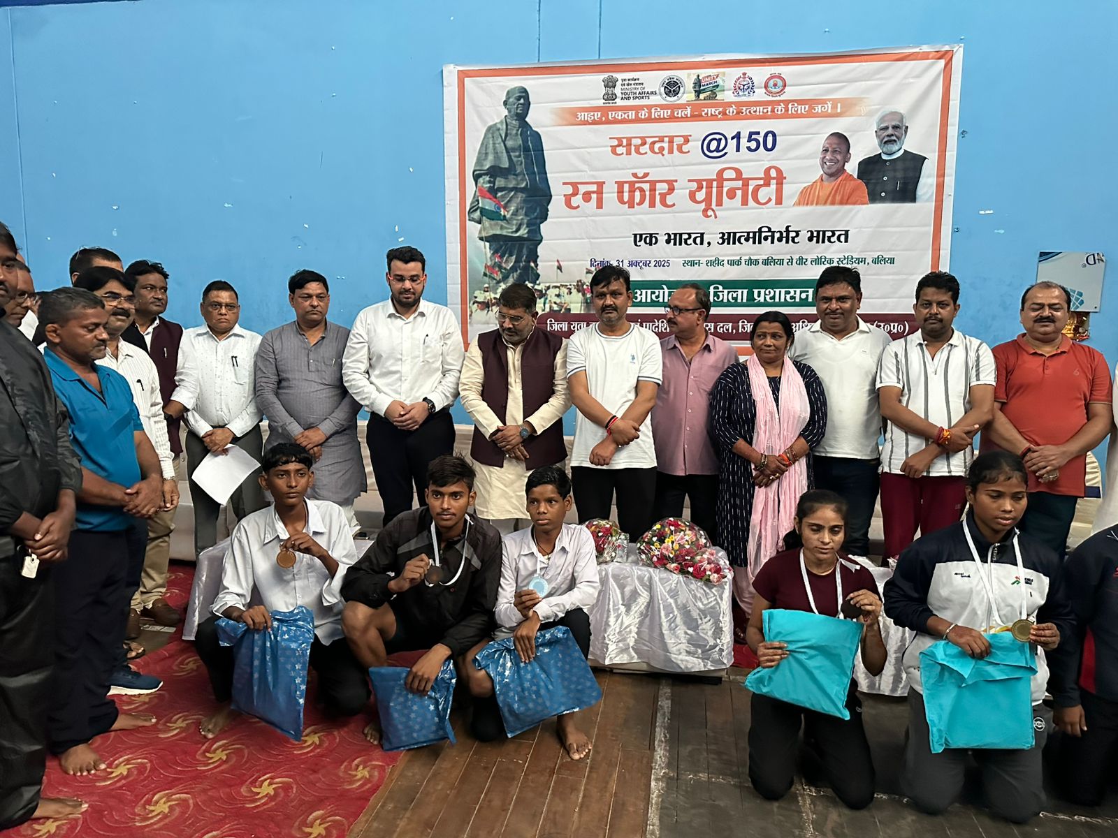 बलिया। लौह पुरुष सरदार वल्लभभाई पटेल की 150वीं जयंती के अवसर पर शुक्रवार को वीर लोरिक स्टेडियम, बलिया में “रन फॉर यूनिटी” का भव्य आयोजन किया गया। जिला प्रशासन द्वारा आयोजित इस कार्यक्रम का शुभारंभ मुख्य अतिथि एवं विशिष्ट अतिथियों ने सरदार पटेल के चित्र पर माल्यार्पण एवं पुष्पांजलि अर्पित कर किया। कार्यक्रम का उद्देश्य देश के महान एकीकरणकर्ता सरदार पटेल के अद्वितीय योगदान को नमन करते हुए युवाओं में राष्ट्रीय एकता, अखंडता और देशभक्ति की भावना को प्रबल बनाना रहा।