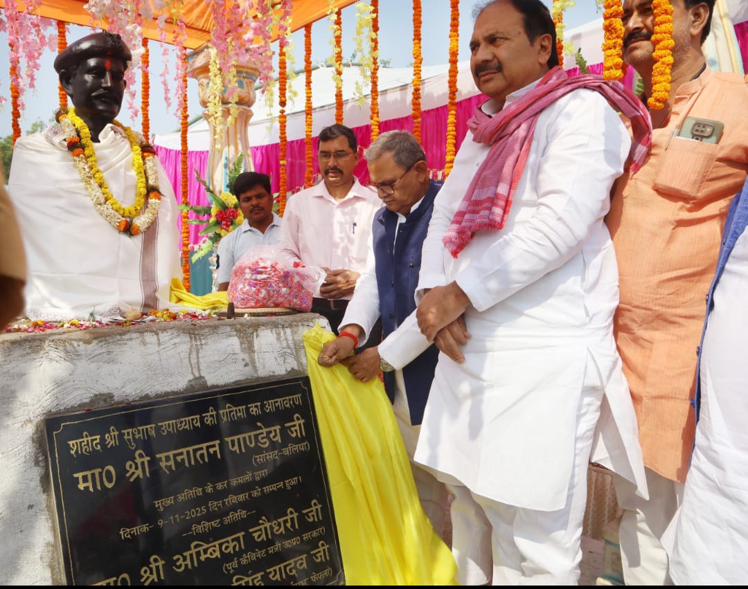 Ballia : सांसद ने शहीद सुभाष उपाध्याय की मूर्ति का किया अनावरण