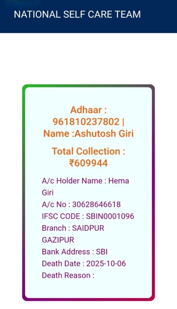 बताया कि टीम से अबतक प्रदेश के करीब 27 हजार लोग जुड़ चुके हैं। चार मार्च को टीम के सदस्य बने गाजीपुर के अमेदा (सैदपुर) गांव निवासी आशुतोष गिरि का छह अक्टूबर को निधन हो गया था। नियमानुसार उनकी पत्नी हेमा गिरि के बैंक अकाउंट में एक से 20 दिसम्बर तक सदस्यों से 50-50 रुपये का सहयोग कराया गया। इस छोटी सी धनराशि से उनके खाते में छह लाख से अधिक की रकम पहुंची है। टीम का लक्ष्य है कि अगले दिवंगत सदस्य की नॉमिनी के खाते में कम से कम दस लाख की धनराशि पहुंचे।
