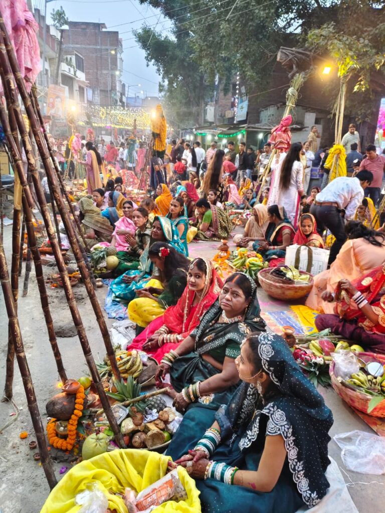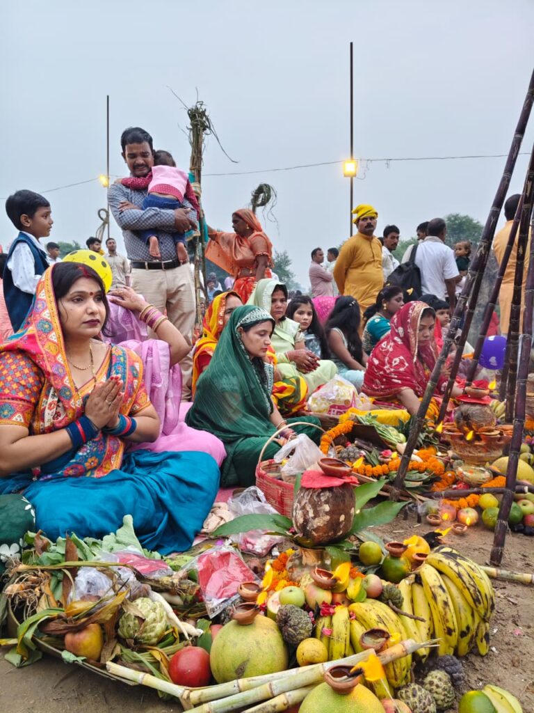 कुछ व्रती महिलाओं ने तालाब, सरोवर, नदी आदि में खड़े होकर पूजन किया। इसके बाद उगते सूर्य को अर्घ्य दिया।
