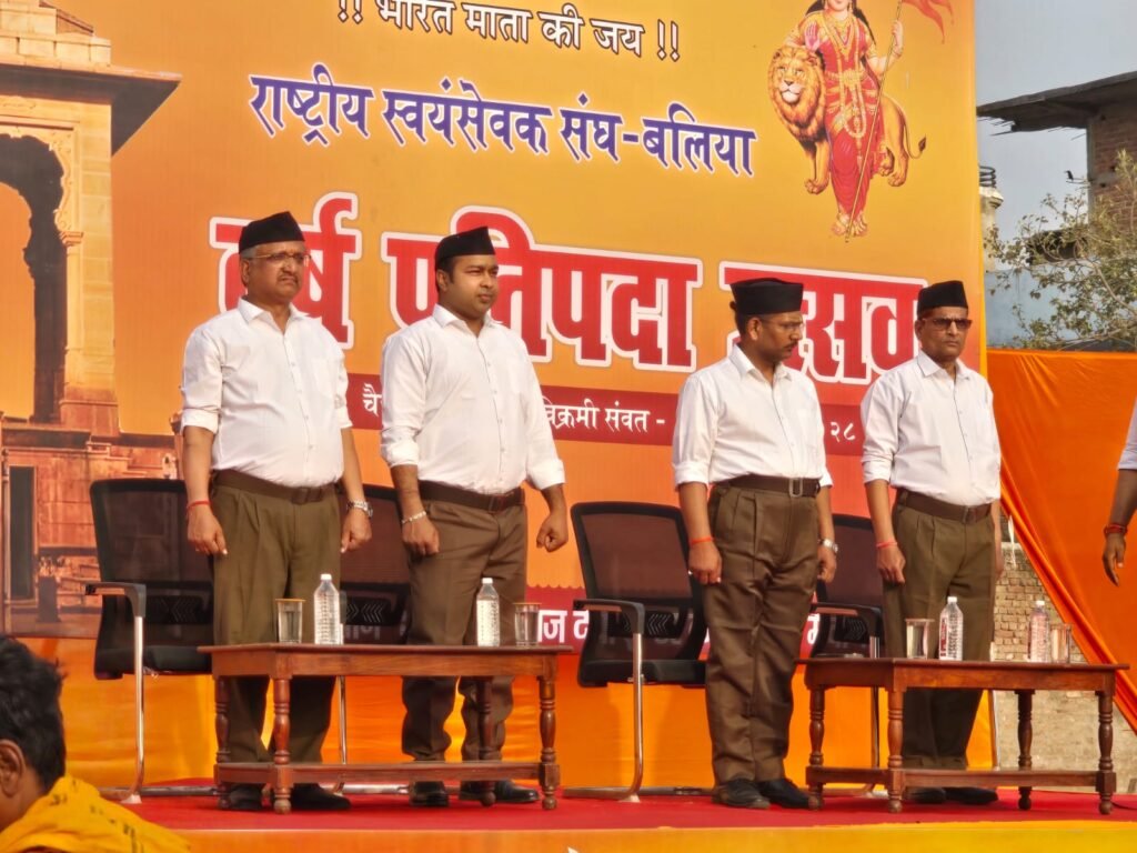 बलिया। राष्ट्रीय स्वयंसेवक संघ (आरएसएस) के कार्यकर्ताओं ने बुधवार को नगर क्षेत्र में भव्य पथ संचलन निकाला। टाउन हाल से प्रारंभ हुआ यह संचलन कासिम बाजार, चौक शहीद पार्क, एससी कॉलेज होते हुए एलडी कॉलेज परिसर में पहुंचकर संपन्न हुआ। पथ संचलन के दौरान स्वयंसेवक गणवेश में अनुशासित ढंग से कदमताल करते नजर आए, जिससे नगरवासियों में खासा आकर्षण रहा।