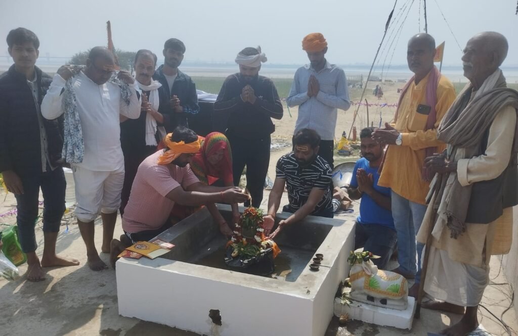 Ballia : मां गंगा और भगवान कृष्ण की प्रतिमा का हुआ रूद्राभिषेक