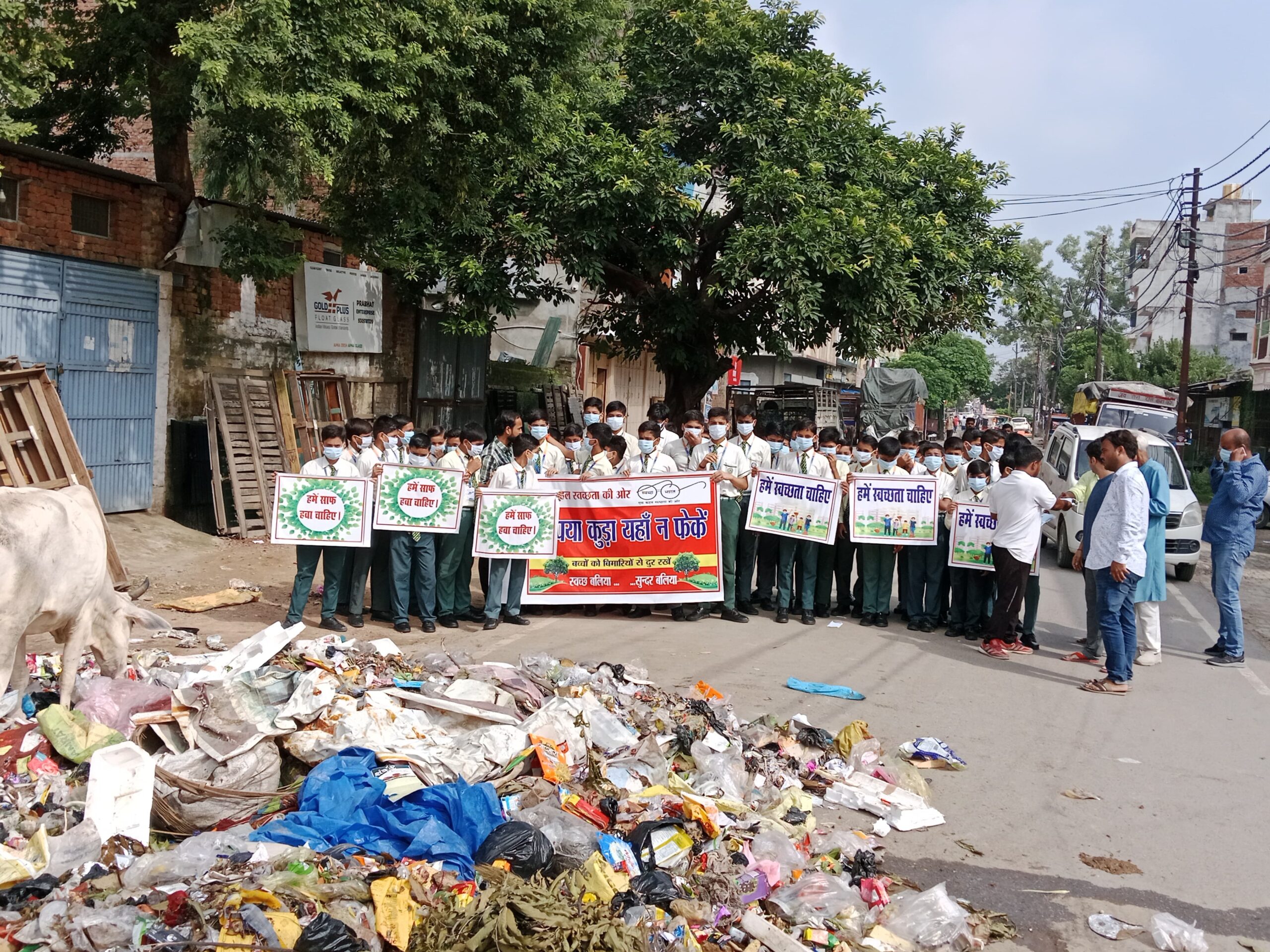 Ballia : ‘कृपया यहां कूड़ा न फेंके‘ का बैनर लेकर सड़क पर उतरे स्कूली बच्चे