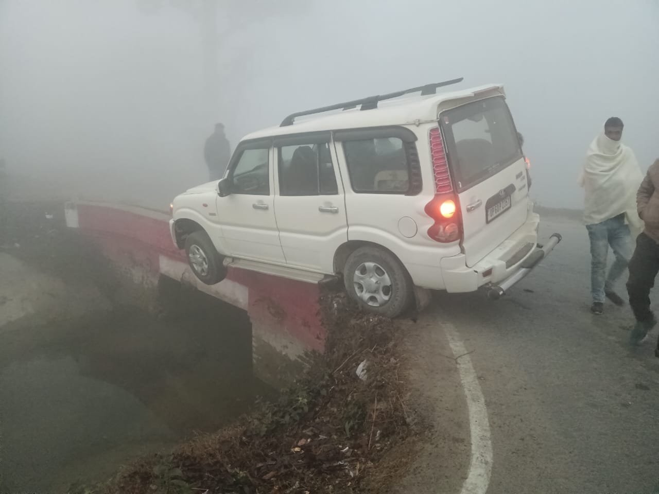 बलिया। रतसड़ गड़वार मार्ग के सिकरिया मोड़ के पास घना कोहरा के चलते रेलिंग विहीन नहर की पुलिया से श्रद्धालुओं से भरी स्कार्पियो पानी भरे नहर में पलटने से बच गई और एक बड़ा हादसा होते होते बच गया। रविवार को तड़के सुबह क्षेत्र के जगदरा गांव से स्कार्पियो से 6 महिलाओं सहित एक पुरुष मौनी अमावस्या पर्व पर बक्सर गंगा स्नान के लिए जा रहे थे। स्कॉर्पियो को मोड़ते समय पुलिया के रेलिंग पर ही स्कॉर्पियो चढ़ गई। कुहासे एवं गहरा धुंध के चलते स्कार्पियो की गति धीमी थी जिसकी वजह से बड़ा हादसा होते होते बच गया। अगर गाड़ी का रफ्तार तेज होता तो बड़ा हादसा हो सकता था।