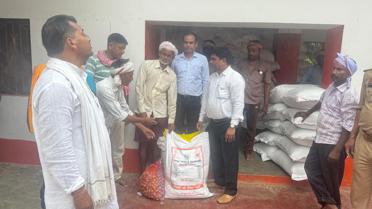 Ballia : एसडीएम ने पांच सौ बाढ़ पीड़ितों में राहत किट व तिरपाल किया वितरण