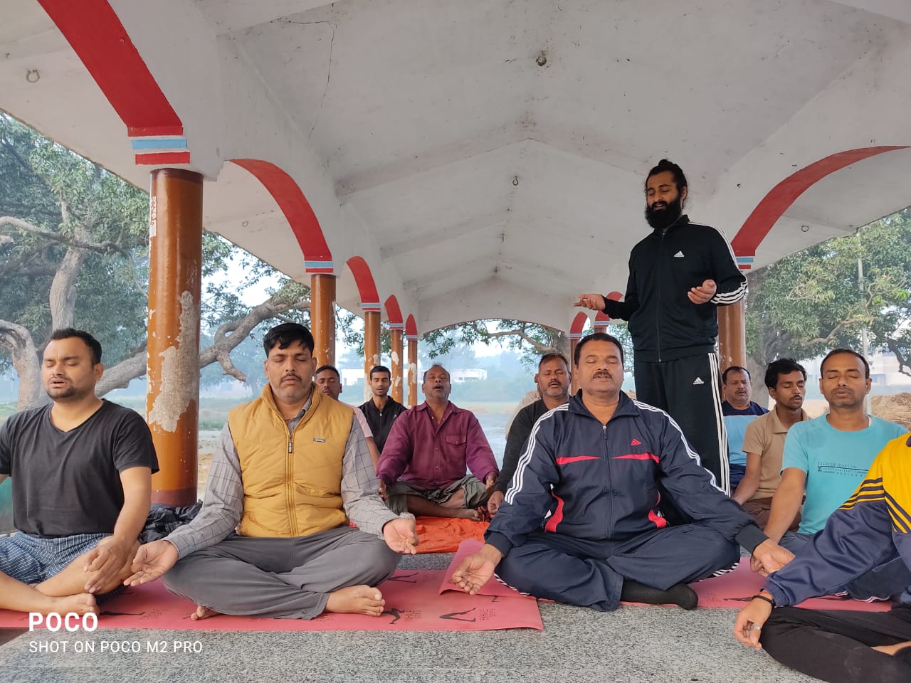 सहतवार (बलिया)। नगर पंचायत की बहुचर्चित योगीराज श्री चैनराम बाबा समाधि स्थल पर अंतराष्ट्रीय योगगुरु निलेश उपाध्याय (वियतनाम) द्वारा ठंड से बचाव के लिए विशेष कार्यशाला का आयोजन किया गया। योग गुरु ने ठंड के मौसम में बार- बार होने वाले सर्दी,जुकाम और कफ के लिए सूर्यभेदी प्राणायाम सहित कपालभाति प्राणायाम की 4 मुख्य क्रियाओं का प्रशिक्षण दिया तथा अभ्यास के क्रम को समझाते हुए बताया कि योगाभ्यास से पूर्व शरीर को गर्म करने के लिए यौगिक जॉगिंग 2 मिनिट, जंपिंग जैक 2 मिनिट तथा कटि चक्रासन 25-25 बार दोनों तरफ से से करना चाहिए।
