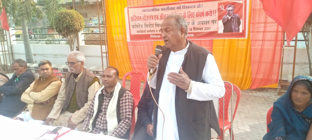 बलिया। भाकपा माले के पूर्व राष्ट्रीय महासचिव कामरेड विनोद मिश्र की 26वीं स्मृति दिवस के अवसर पर बुधवार को कार्यकर्ता सम्मेलन एवं संकल्प सभा का आयोजन सिकन्दरपुर कब्जा के एक उत्सव गृह के सभागार में किया गया। इस अवसर पर सर्वप्रथम पार्टी का झण्डा-तोलन एवं कामरेड विनोद मिश्र के चित्र पर पुष्पांजलि अर्पित कर उनको श्रद्धांजलि देने के साथ ही आगामी 15-16 फरवरी को जनपद में आयोजित पार्टी का राज्य सम्मेलन को सफल बनाने का संकल्प लिया गया। इस अवसर पर संकल्प सभा में उपस्थित लोगों को सम्बोधित करते हुए पार्टी के केन्द्रीय कमेटी के सदस्य श्रीराम चौधारी ने देश की जो राजनीतिक हालात पर चर्चा करते हुए कहा कि आज देश की स्थिति बेहत गम्भीर और नाजूक है। देश और प्रदेश की भाजपा सरकार साम्प्रदायिक नफरत फैलाकर देश की एकता और अखण्डता को खतरा में डाल रही है। उन्होंने विनोद मिश्र की उक्तियों को दोहराते हुए कहा कि आज से 26 वर्ष पहले बी0एम0 ने कहा था कि इतिहास गवाह है बड़े-बड़े परिवर्तन संसद से नहीं बल्कि सड़कों पर संघर्ष से ही हासिल हुए है। आज समय की मांग और जरूरत है कि युवा शक्ति फांसीवादी चेहरों और साम्प्रदायिक नफरतों के खिलाफ सड़क पर उतरकर बदलाव का वाहक बनें। वहीं कामरेड ओमप्रकाश सिंह ने कहा कि साम्प्रदायिक फासीवाद के खिलाफ लड़ाई में कामरेड विनोद मिश्र के विचार आज भी प्रसांगिक है। लोकतंत्र और संविधान को बचाने के लिए भाजपा सरकार के खिलाफ लोगों को एकजूट करने की जरूरत है। कार्यक्रम को प्रमुख रूप से बसन्त कुमार सिंह, लक्ष्मण यादव, राधेश्याम चौहान, रामप्रकाश गुप्त, शैलेश सिंह एडवोकेट, वशिष्ठ राजभर, भागत बिन्द, रेखा पासवान, नियाज अहमद, लीलावती, सोमरिया देवी, प्रेमा यादव, शम्भू राजभर, राजू राजभर, शिवजी गुप्ता, रमाशंकर राम, योगेन्द्र राम, आदि ने सम्बोधित किया। संचालन लाल साहब एवं अध्यक्षमता मुख्तार अहमद एडवोकेट ने किया।