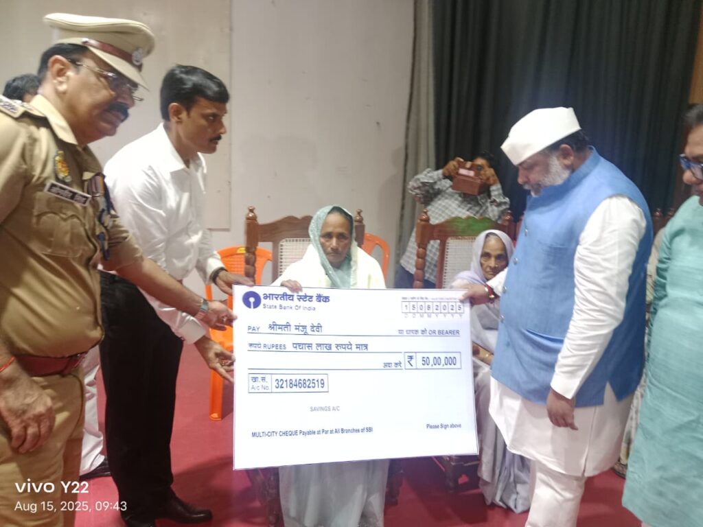 बलिया में हर्षाेल्लास से मना 79वां स्वतंत्रता दिवस, शहीद सैनिक की पत्नी को सौंपा गया 50 लाख का चेक