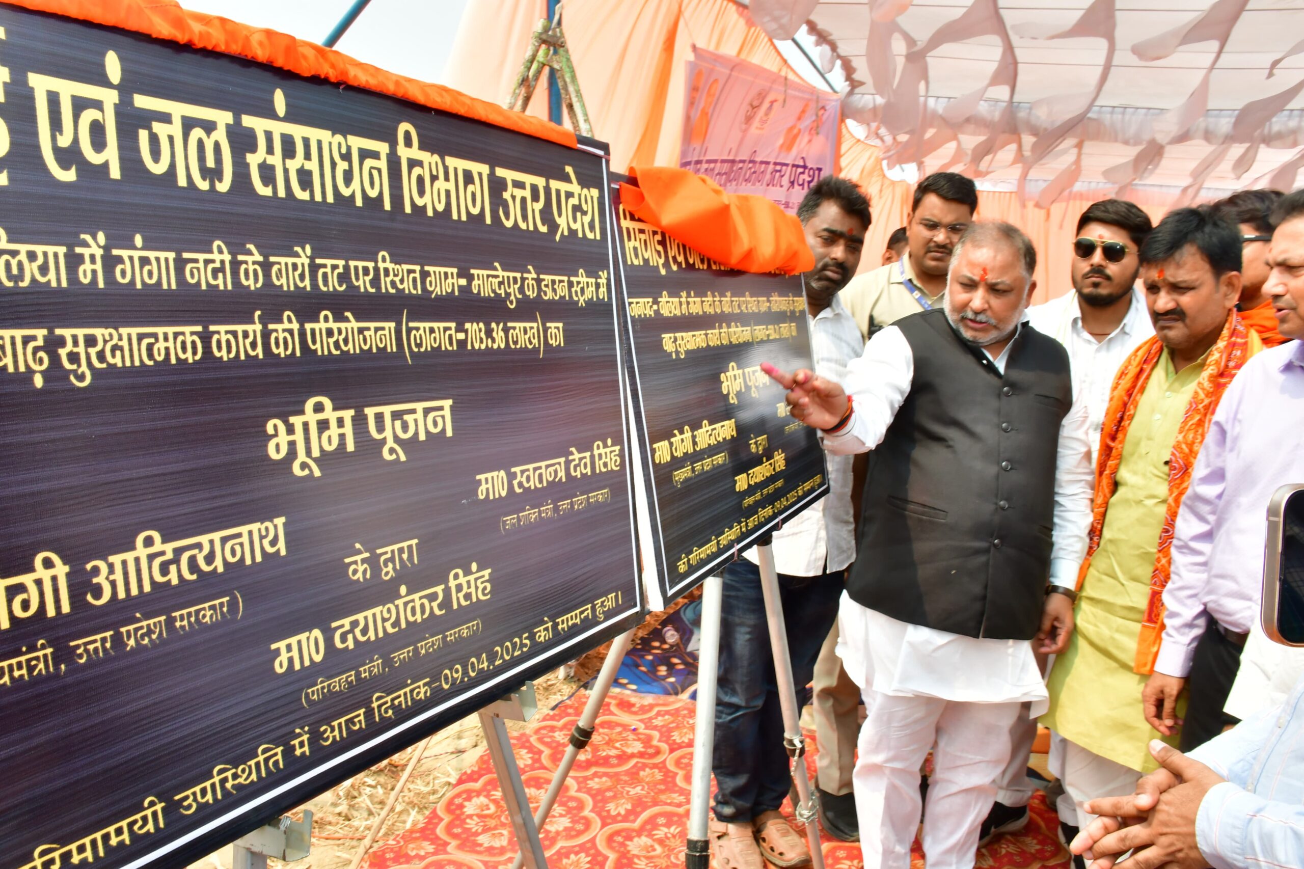 Ballia : परिवहन मंत्री ने 40 करोड़ के बाढ़ निरोधक कार्यों का किया शिलान्यास