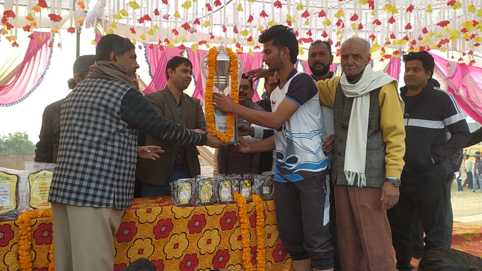 बेल्थरारोड (बलिया)। जीएमएएम इंटर कॉलेज के खेल मैदान पर चल रहे राज्यस्तरीय वॉलीबाल टूर्नामेंट के फाइनल में बालेपुर ने संघर्ष पूर्ण मुकाबले में देवरिया हॉस्टल को 2-0 से शिकस्त दे खिताब पर कब्जा जमाया। इसके पूर्व सेमीफाइनल में देवरिया हॉस्टल ने प्रयागराज को 2-0 तथा बालेपुर में मऊ को 2-0 से पराजित कर फाइनल में जगह बनाई। पांच चक्र के फाइनल मैच में बालेपुर और देवरिया हॉस्टल के बीच कड़ा मुकाबला हुआ। दोनों टीमों ने मैच जीतने के लिए पूरा प्रयास किया, लेकिन रोमांचक मैच में बालेपुर में मैच जीत कर श्रेष्ठता सिद्ध की। राष्ट्रीय प्रशिक्षक के रामजीत की अगुवाई में शिवाजी सिंह, रफीक अहमद, मलिक इरफान रेफरी रहे, जबकि सुशील तिवारी अरशद हिंदुस्तानी ने कमेंटेटर की भूमिका निभाई। चिकित्सक डॉ. फैजुर्रहमान ने विजेता और उपविजेता टीम को पुरस्कृत कर सम्मानित किया। उन्होंने खिलाड़ियों का उत्साहवर्धन कर शुभकामनाएं दीं। मौके पर खालिद जहीर, नन्हे भाई, महबूब आलम, गुड्डू, शहाब अहमद, परमहंस आदि मौजूद रहे।