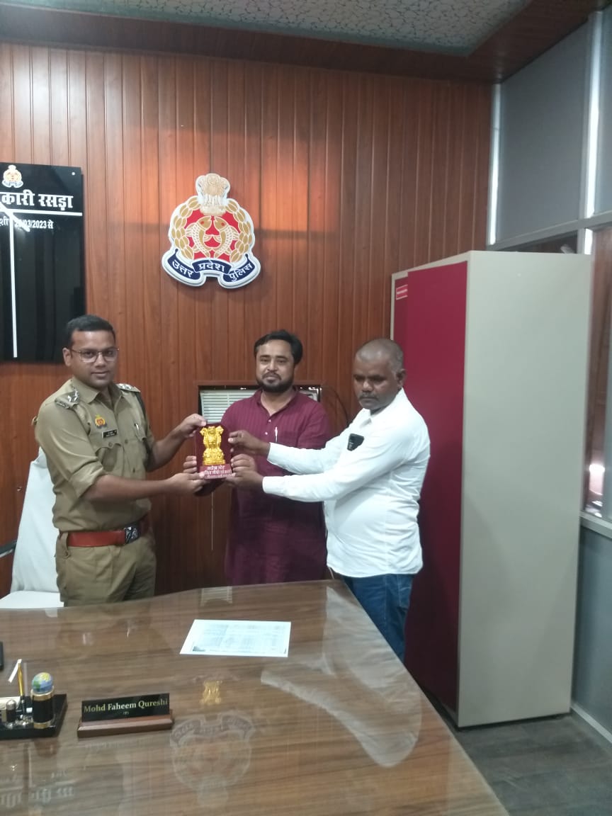 बलिया। रसड़ा क्षेत्र के पुलिस सर्किल आफिसर फहीम कुरैशी अपने उच्च कार्याे एवं निष्पक्ष कार्यशैली से क्षेत्र में एक अलग छाप छोड़ चुके है एवं आम जनमानस में भयमुक्त समाज की स्थापना करने में लगे है। उनके कार्याे से खुश होकर रसड़ा क्षेत्र में समाजसेवा के रूप में अपने कार्याे से लोहा मनवाने वाली गैर राजनीतिक संगठन भारत नौजवान क्रांति सभा के वरिष्ठ समाजसेवियों ने शनिवार को रसड़ा तहसील पहुंच पुलिस क्षेत्राधिकारी फहीम कुरैशी को स्मृति चिन्ह देकर सम्मानित किया। इस मौक़े पर संगठन के केन्द्रीय संयोजक जावेद अंसारी जाम, सुनील मौर्या, कमलेश चौबे, गुड्डू सिंह, निर्भय मौर्या, नियाज़ अंसारी, प्रकाश भारती, सूर्यकांत यादव, अभय यादव, संजीव सिंह आदि मौजूद रहे।