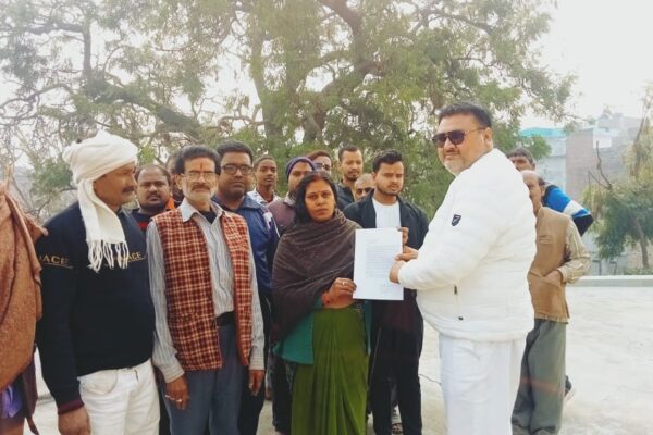 Ballia : नाली तोड़कर पीलर बनाने को लेकर लोगों ने नगर पंचायत अध्यक्ष को सौंपा पत्रक