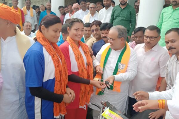 भाजपा के प्रदेश अध्यक्ष के हाथों स्कूटी पाकर दोनों बहनों के खिले चेहरे, जताया आभार बलिया। राष्ट्रीय किक बॉक्सिंग चैंपियनशिप 2024 की स्वर्ण पदक विजेता अखार निवासी दीपाली राय एवं प्रीति राय को रविवार को नगर स्थित एक मैरिज हाल में भाजपा के प्रदेश अध्यक्ष भूपेंद्र चौधरी ने इलेक्ट्रिक स्कूटी देकर सम्मानित किया। प्रदेश सरकार…