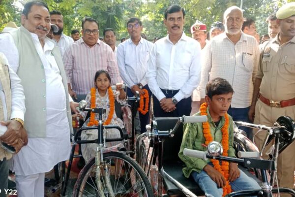 Ballia : परिवहन मंत्री ने दिव्यांगजनों में सहायक उपकरण किया वितरण