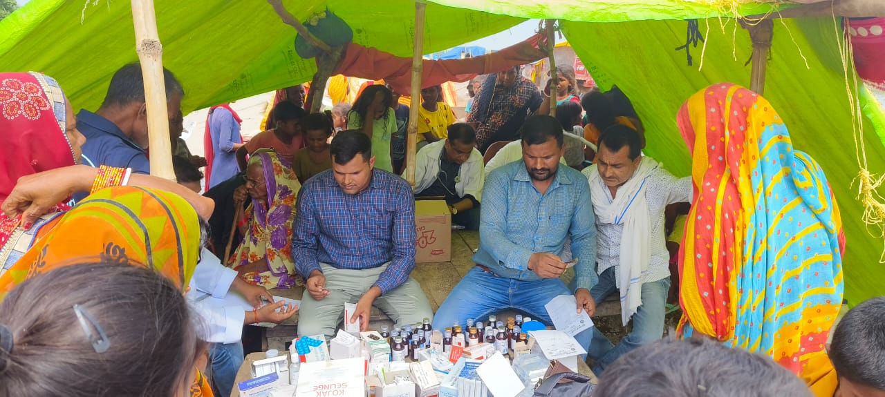 बाढ़ जनित बीमारियों का दवा वितरण क्लोरीन की टेबलेट वितरण, ओआरएस पाउडर 15 दिनों से अधिक बुखार वाले मरीजों का कालाजार का टेस्ट मलेरिया, टाइफाइड, हीमोग्लोबिन, एचआईवी, हेपेटाइटिस बी इत्यादि प्रकार की जांच की सुविधा दी गई। मौके पर डा. देवनीति से बताया कि जब से बाढ़ आई है तब से स्वास्थ्य शिविर चल रहा है। रविवार को बृहद स्तर पर जनआरोग्य मेला के तहत बाढ़ पीड़ितों में दवा आदि का वितरण किया गया है।