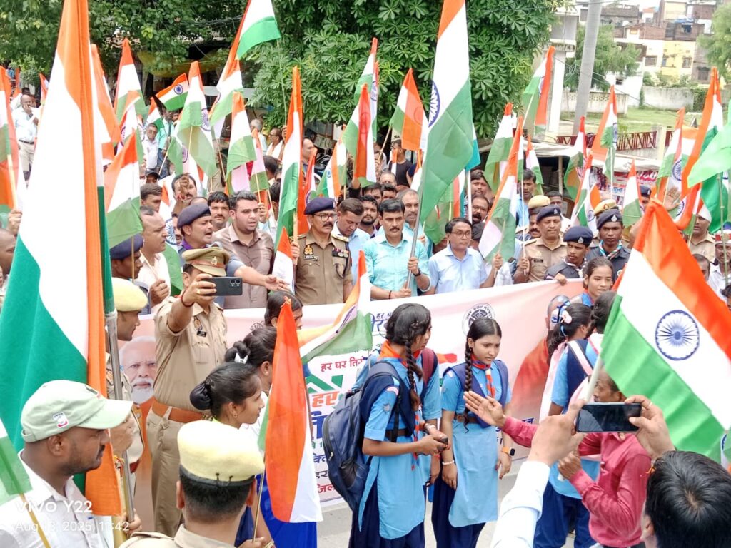 साथ ही तिरंगा यात्रा की शुरुआत पुलिस लाइन से कुंवर सिंह चौराहा, टीडी कॉलेज चौराहा, ओवरब्रिज, शहीद पार्क चौक, रेलवे स्टेशन, चित्तू पाण्डेय चौराहा, रेलवे क्रॉसिंग, टीडी कॉलेज चौराहा होते हुए कलेक्ट्रेट परिसर में समापन हुआ।