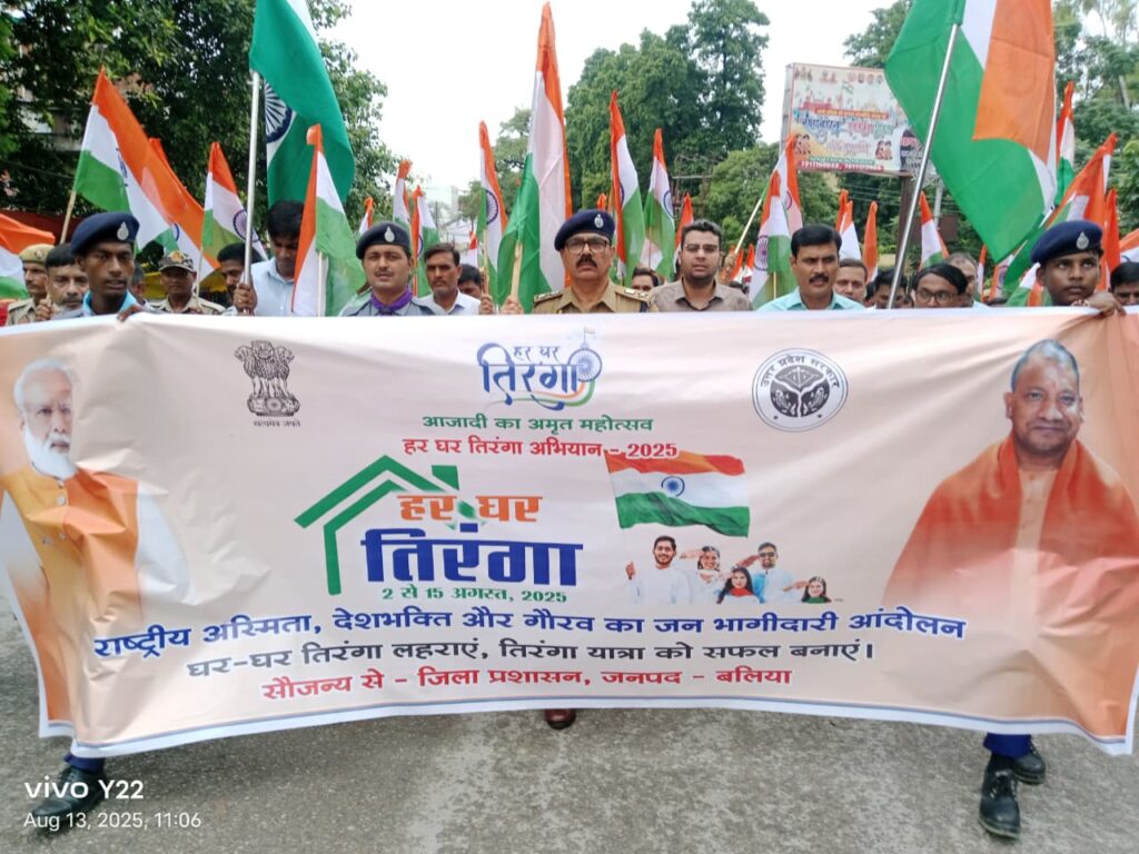 Ballia : जिलाधिकारी के नेतृत्व में बलिया शहर में निकाली गई भव्य तिरंगा यात्रा रैली