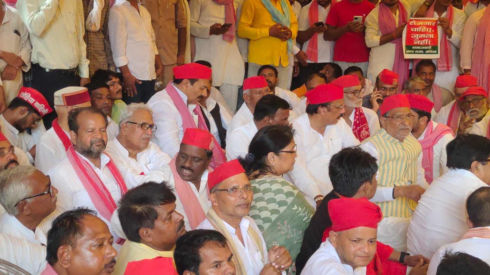 Ballia : धरना प्रदर्शन में दिखा नेताओं का शक्ति प्रदर्शन