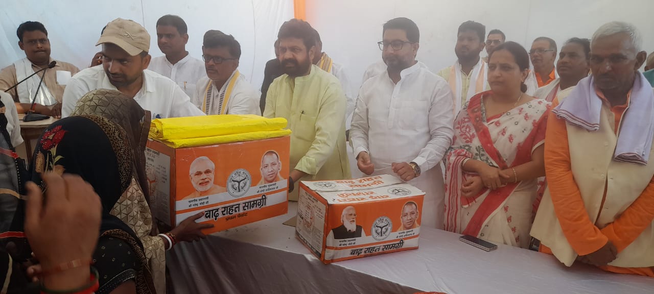 Ballia :बाढ़ पीड़ितों के बीच पहुंचे प्रभारी मंत्री, राहत सामग्री का किया वितरण