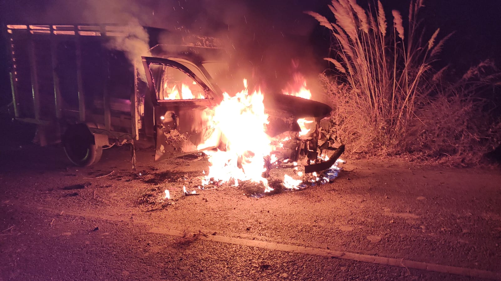 Ballia : थाने के पास धू-धू कर जल उठा पिकअप, अज्ञात कारणों से लगी आग