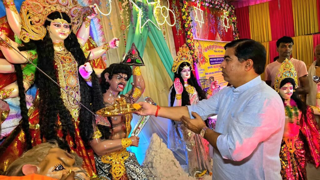 कहा कि नवरात्रि का पर्व केवल धार्मिक आस्था का प्रतीक नहीं है। यह समाज में भाईचारा, एकता और सद्भावना को भी मजबूत करता है। क्षेत्र में धार्मिक और सांस्कृतिक गतिविधियों को बढ़ावा देना सभी नागरिकों का कर्तव्य है। समाज में भाईचारा बनाये रखने के साथ ही एकता की भावना को जीवित रखना इस प्रकार के उत्सवों का सबसे बड़ा संदेश है। वहीं, मां दुर्गा का पट खुलते ही श्रद्घालुओं ने जयकारा लगाया।