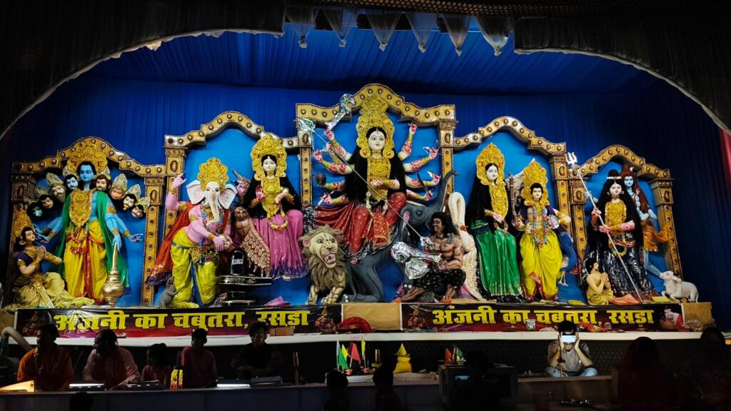 रंग-बिरंगे रोशनियों से पंडाल जगमग हो रहे है। नगरा में भी दुर्गा पूजा की धूम है।
