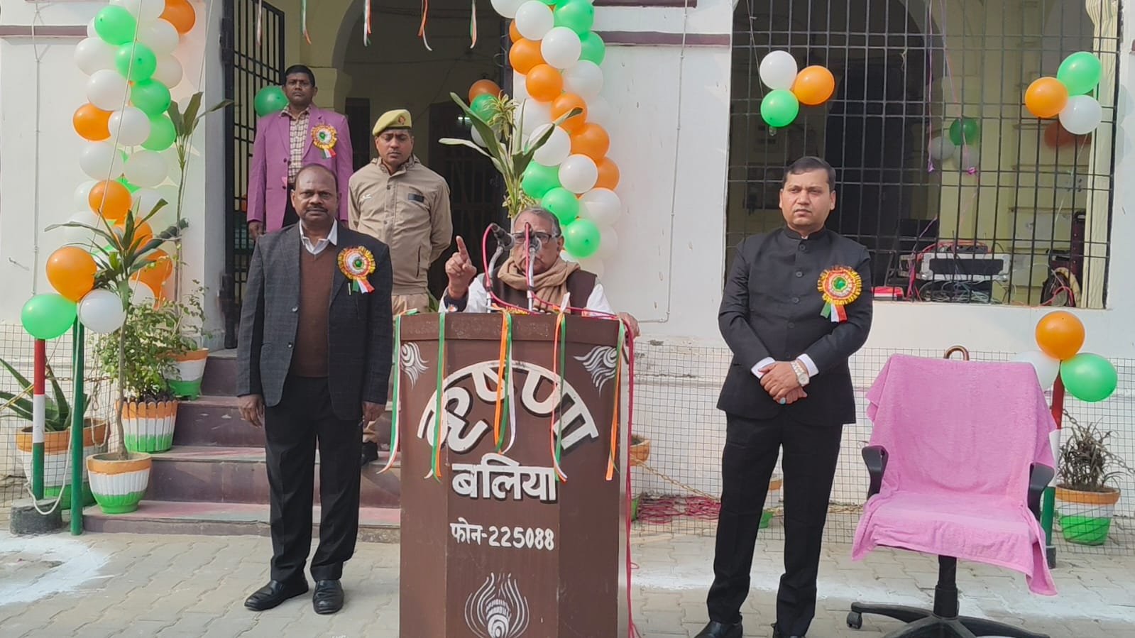 बलिया। जिला कोषागार में धूमधाम से गणतंत्र दिवस मनाया गया। झंडारोहण के बाद पेंशनरों को सम्मानित किया गया। इस दौरान सांस्कृतिक कार्यक्रमों का आयोजन किया गया जिसमें कई पेंशनरों ने कार्यक्रम की प्रस्तुति की। वरिष्ठ कोषाधिकारी आनंद दुबे ने लगभग सौ पेंशनरों को भोजन कराते हुए उनके जीवन की मंगलकामना की। इस अवसर पर रामचंद्र, अवधेश यादव, धर्मनाथ गोस्वामी, रमेश कुमार, सरोज कुमार आजाद, असगर हुसैन, नीलम पांडेय, राजेंद्र प्रकाश, कृष्ण कुमार, सत्यभान गुप्ता, पुष्पा सिंह, रवि कुमार आदि थे।