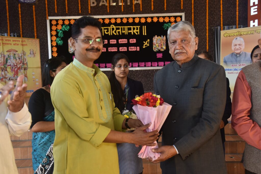 बलिया। द होराइजन स्कूल त्रिकालपुर गड़वार बलिया में आयोजित आध्यात्मिक कार्यक्रम रामचरितमानस गायन की बहुत सुंदर प्रस्तुति विद्यालय के छात्र छात्राओं द्वारा किया गया। कार्यक्रम का प्रारम्भ तुलसी पूजन व दीप प्रज्वलित कर किया गया। इस प्रस्तुति में बालकांड, अयोध्याकाण्ड अरण्यकाण्ड, किष्किंधाकांड, सुंदरकांड, लंकाकांड उत्तरकाण्ड आदि प्रस्तुति के साथ साथ भगवान राम के जीवन के विभिन्न पहलुओं को दर्शाया गया, जैसे कि उनकी मर्यादा, अनुशासन और सभी के प्रति उनका सम्मान का भाव रहता है।