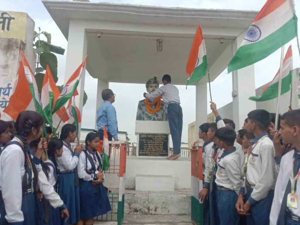 इसी क्रम में ग्राम सुजायत स्थित शहीद मनोज सिंह की प्रतिमा पर पर माल्यार्पण कर श्रद्धांजलि दी गई।