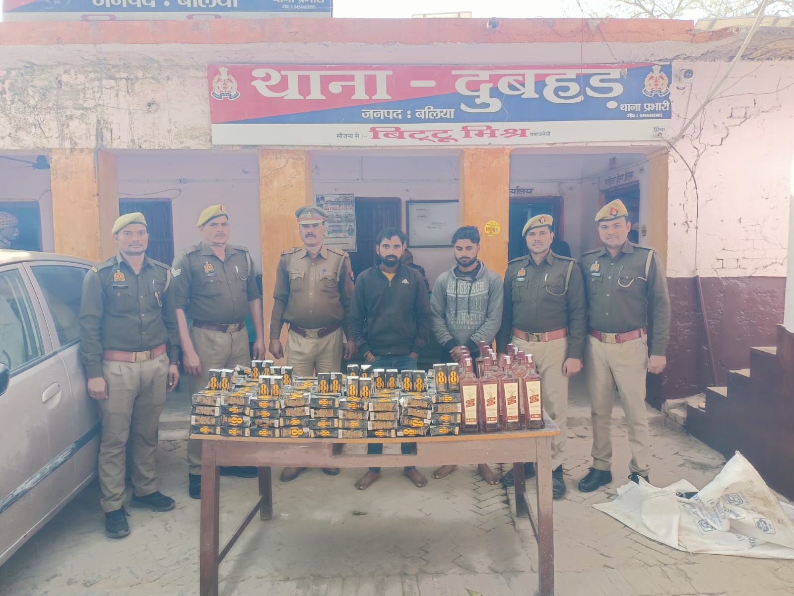 Ballia : कार से 60 हजार की शराब बरामद, दो तस्कर गिरफ्तार