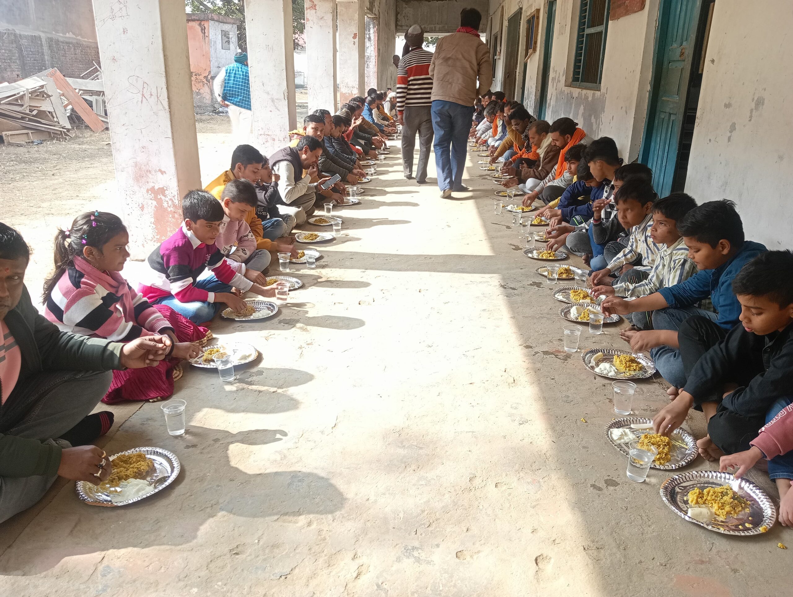 Ballia : संघ के सहभोज में स्वयंसेवकों ने खिचड़ी का उठाया लुत्फ़