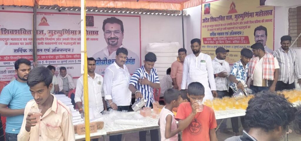 Ballia : गुरू पूर्णिमा महोत्सव में श्रद्धालुओं की सेवा में उतरी योगेश्वर की टीम